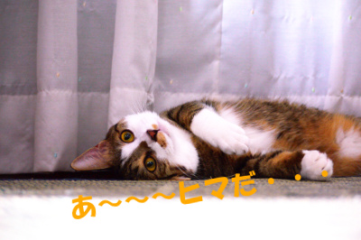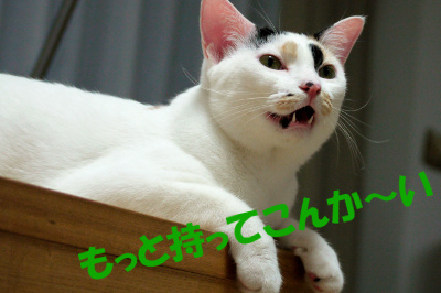 無幻がなんですけどね、風邪をひいたのはw 夜中に気分が悪くなりキッチン周りをウロウロ・・・ (嫁は熟睡中。つか、起してる余裕なしってか。) 無幻:おぇ~・・・ 気持ちわりぃ~。 キッチンでうずくまっている所を、フェイとモカが観察中。 フェイ:おやつ ちょうだ~いw モカ:遊んでよ~♪ をぃ・・・この状況が分からんのか。(--メ) ピクリッ 昨晩はこんな状況でして・・・ ぐぬぬ・・・フェイ。 そ、そうですか・・・やっぱりねw そ、それは・・・薄々わかっていたよ・・・ ぐぬぬ・・・