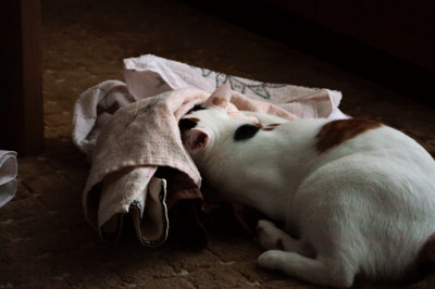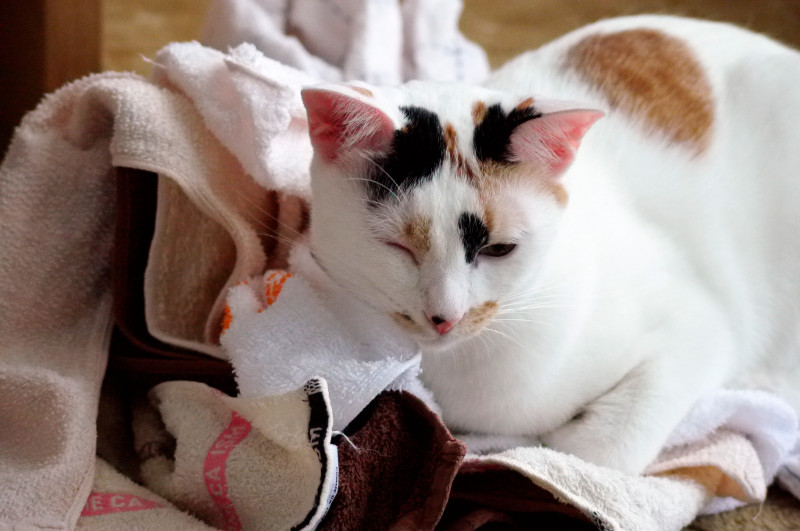 現在は静養中ではなく、乾いた洗濯物へダイブ中・・・それなりに元気一杯です。
