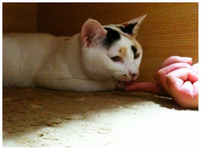 むほほ。オヤツと勘違いしてなめてくれましたですw